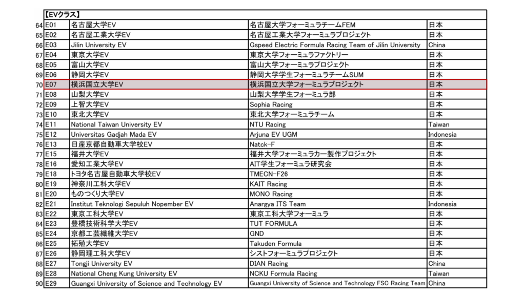 【カーナンバー決定】 2025年12月26日 最終更新日時 : 2025年12月26日 記事更新YNFP 12月25日(木曜日)、学生フォーミュラ日本大会2026の参加チームリストが公開されました。 弊チームはカーナンバーE07を背負って挑みます。改めまして、今年度もよろしくお願いいたします。 «【車両特性の測定】本田技研工業株式会社様 【大掃除】ジュニアモーターパーククイック羽生様»