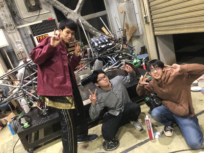私達シャシー班は13時に集合して,部品をマシンに組み付け.シャシー班は若干二日酔い..