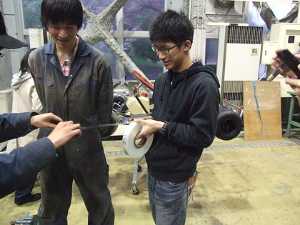 今日M2の根岸さんに教えていただきながら、試作カーボンパイプの積層を行いました。