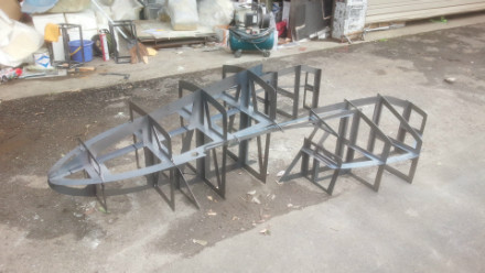 午前はウレタンをはめ込むための鉄枠を組み立て、午後は枠にはまるように