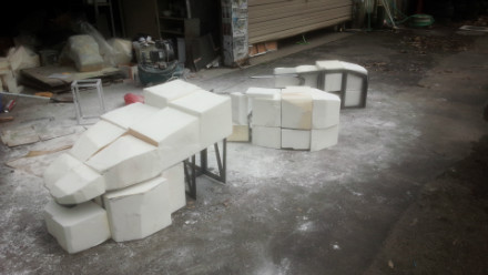 予め切り出したおいたウレタンをひたすら削っていました。作業的にはそれほど
