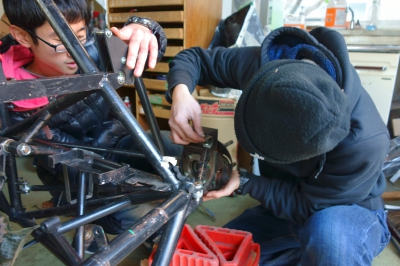 エンジン載せ替えをしている裏では、フレームに使うパイプのすり合わせをしていました。