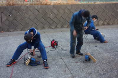 グラインダーでパイプをうまい具合に切り、うまい具合に組み合わせていきます。