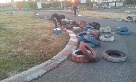 コース上の掃き掃除、ウレタンマットの清掃&整備、縁石の塗装など、主にコース周りの清掃のお手伝いをさせて頂きました。