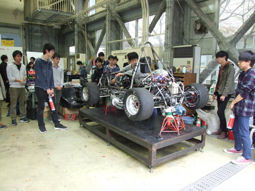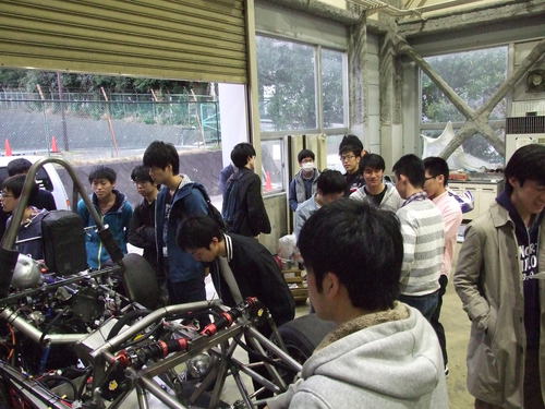 また、エンジン始動後はOB・現役・新入生が入り混じって宣伝、マシン説明、活動紹介、関係ない雑談等、ごっちゃ混ぜに繰り広げましたが皆楽しそうに過ごしてくれたようで何よりです。