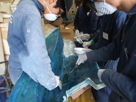 自分はへらで樹脂とガラス繊維をぺたぺたしていたのですが、